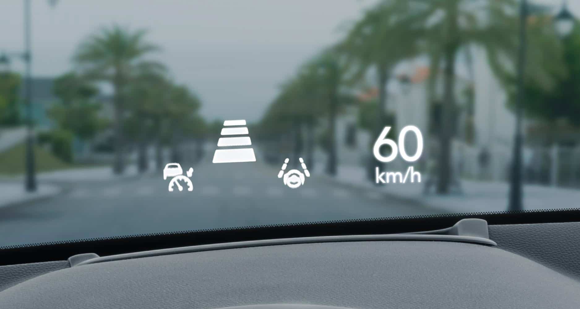 Hiển thị thông tin trên kính lái (HUD): Hiển thị tốc độ trên kính lái, giúp việc lái xe dễ dàng an toàn (e:HEV RS).