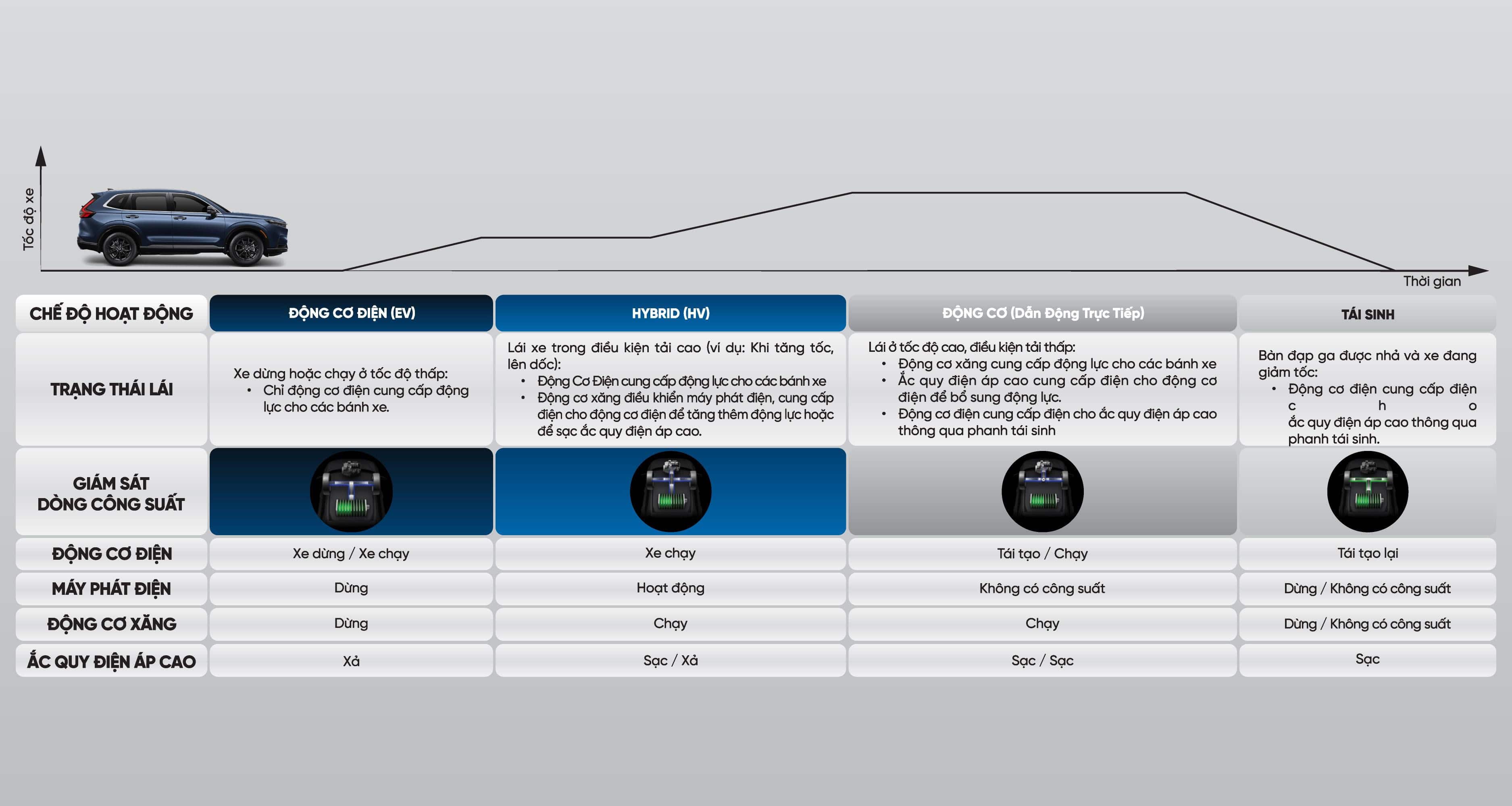 Với công nghệ e:HEV Hybrid tiên tiến vượt trội, Hệ Thống Công Nghệ Hỗ Trợ Lái Xe An Toàn Tiên Tiến Honda SENSING, ứng dụng Honda Connect One, Honda CR-V mang đến trải nghiệm lái đầy phấn khích