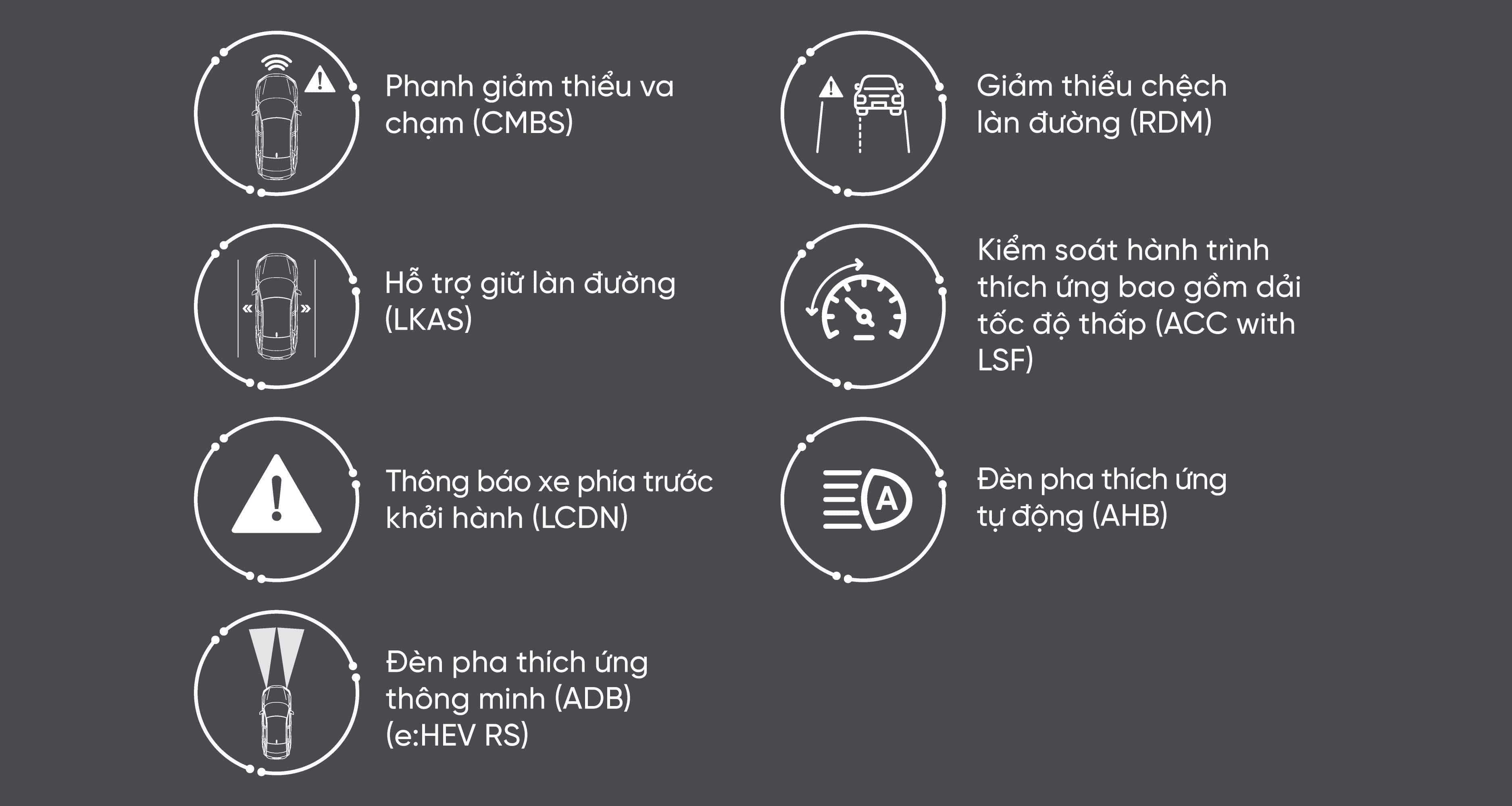Hệ thống 8 túi khí: Hệ thống túi khí trước, túi khí bên, túi khí rèm 2 bên và nay có thêm túi khí đầu gối với tiêu chuẩn 5 sao an toàn tối ưu theo đánh giá của ASEAN NCAP